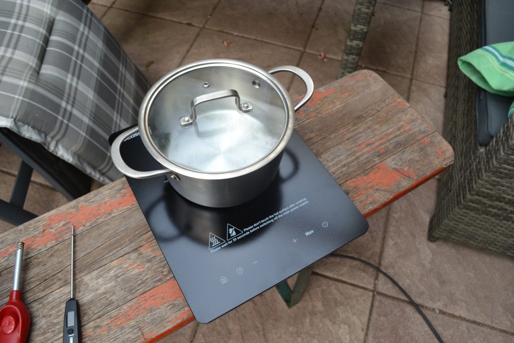 Der Aufbau für den Test des Kochers ging natürlich sehr schnell, weil hier die Induktionskochplatte nur mit dem Strom verbunden werden musste.