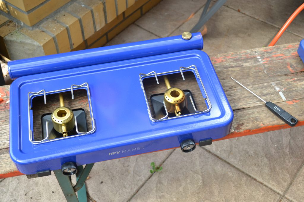 Als dritte Alternative habe ich einen Spirituskocher Mambo der Marke „HPV“ getestet. Dieser zweiflammige Kocher verfügt über einen eigenen Tank und deshalb wird dazu kein separater Tank benötigt.