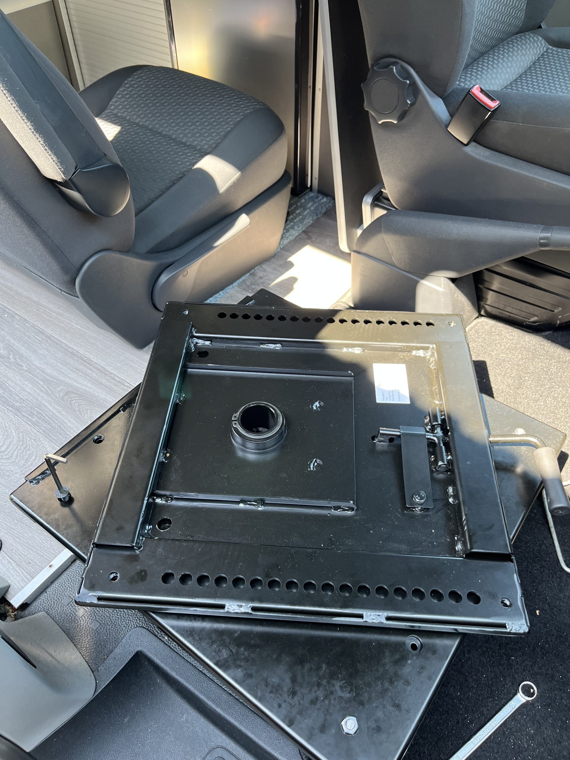 UPDATE vom 14.06.23: Die Drehkonsole ist endlich angekommen und der Einbau war sehr einfach. Zunächst habe ich den Sitz abgeschraubt und dann die neue Sitzkonsole ausgepackt.